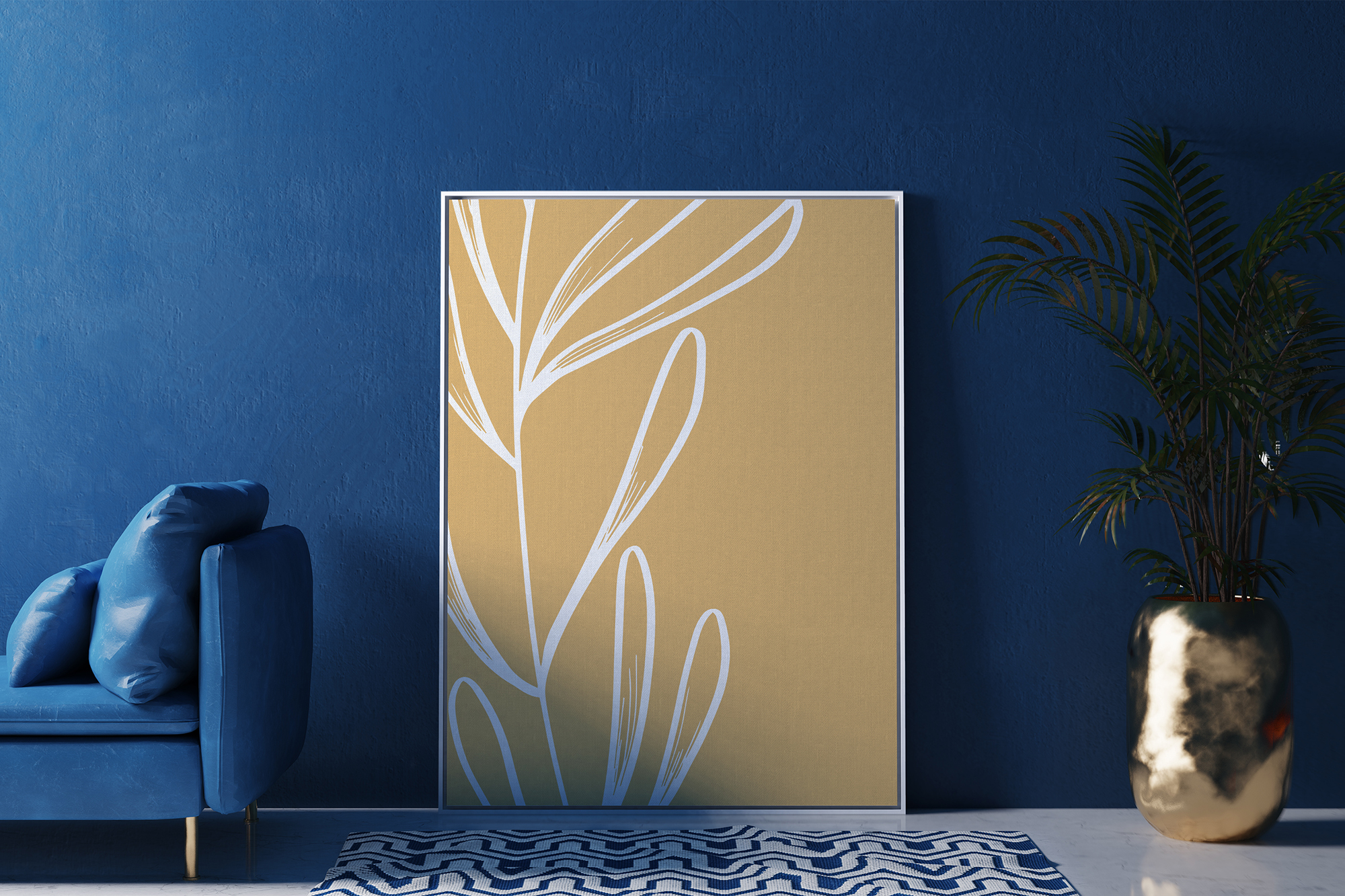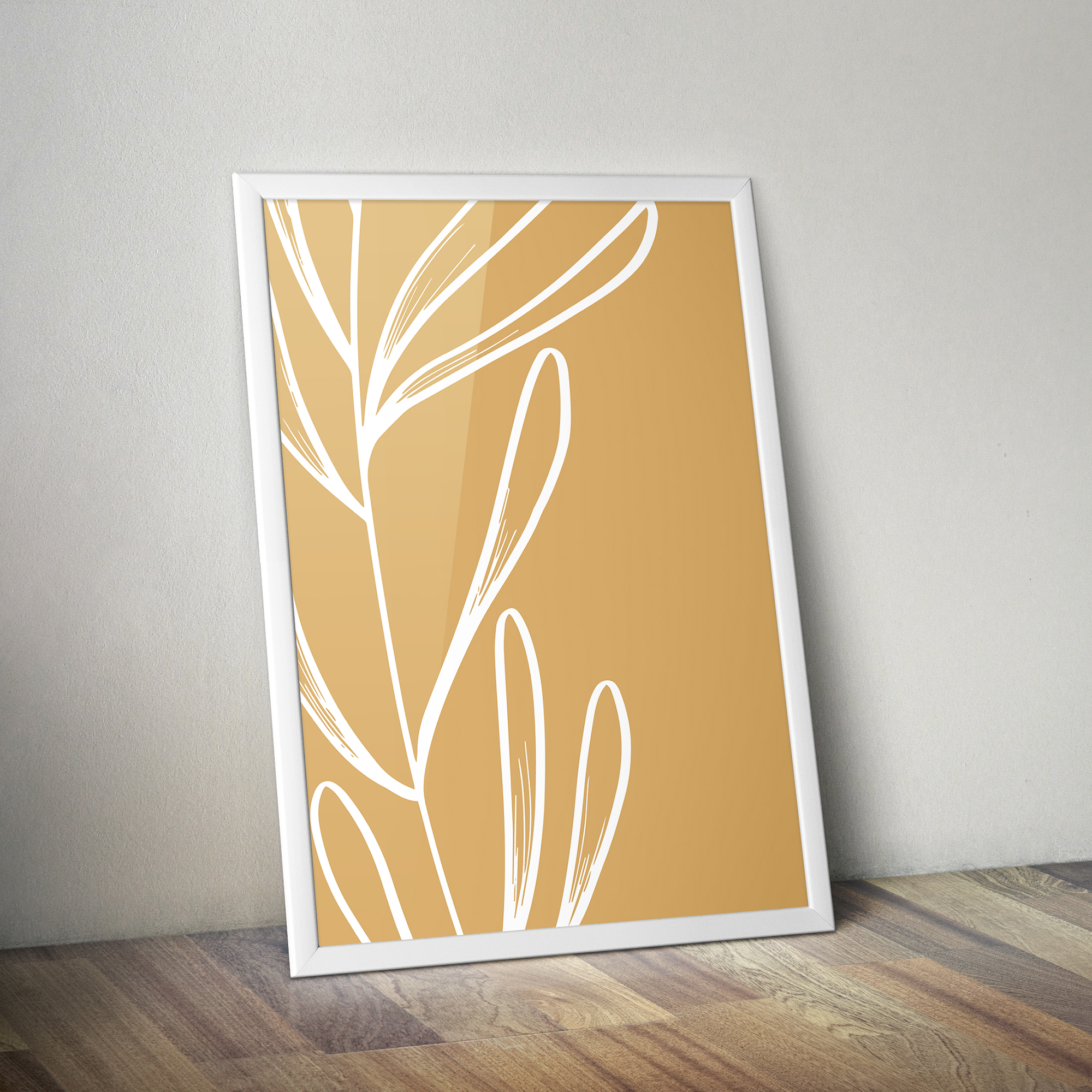 Leuke minimalistische, botanische poster en canvas print met een gele achtergrond. Deze print is onderdeel van een drieluik van botanische posters en prints in de kleuren licht blauw, donkerblauw en geel. Natuurlijk zijn alle prints ook los verkrijgbaar. In dit minimalistische, botanische drieluik een close-up van takjes, blaadjes en bloemen. Past perfect in elk modern, minimalistisch of Scandinavisch interieur, maar zou ook niet misstaan als rustpunt in een landelijk interieur.